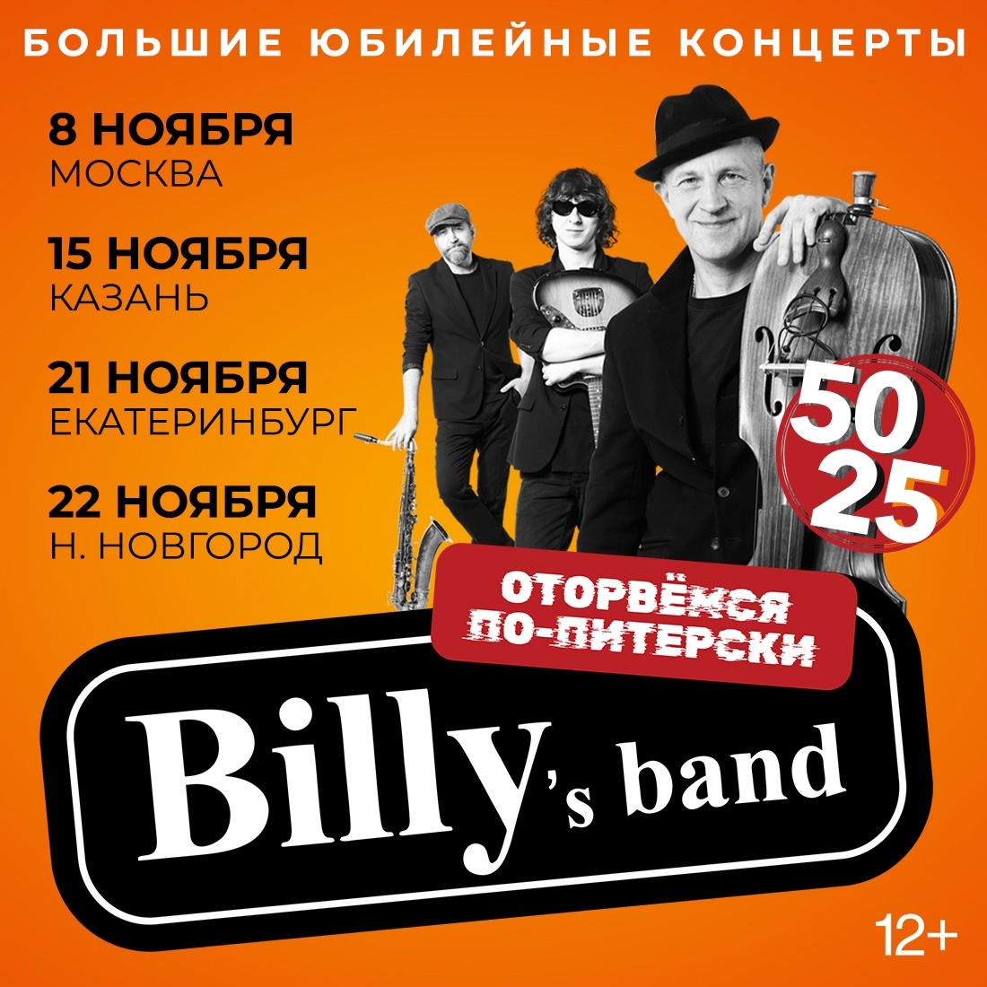 Большой юбилейный концерт в честь своего 25-летия группа Billy’s Band отметит в сопровождении оркестра и звёздных гостей – друзей группы. Музыкальная программа охватит все творческие проекты всех периодов коллектива.